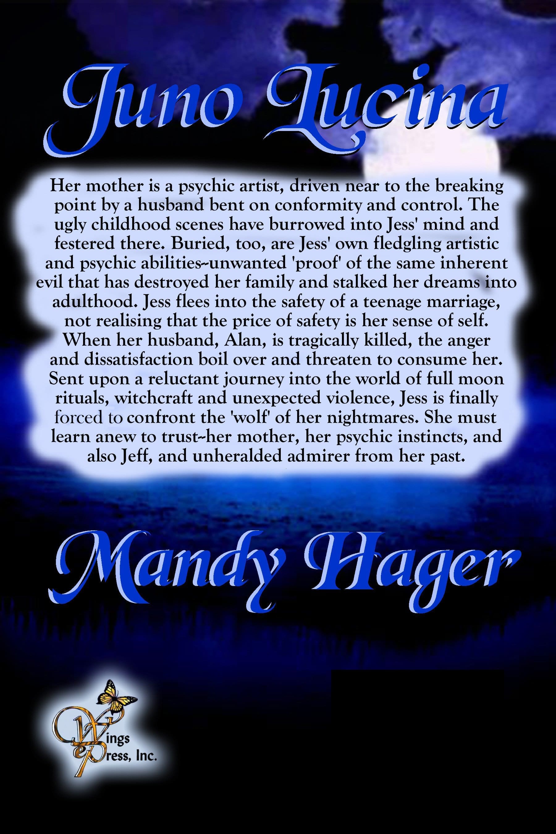 When her husband, Alan, is tragically killed, the anger and dissatisfaction boil over and threaten to consume her. Sent upon a reluctant journey into the world of full moon rituals, witchcraft and unexpected violence, Tess is finally forced to confront the ‘wolf’ of her nightmares. She must learn anew to trust – her mother, her psychic instincts, and also Jeff, an unheralded admirer from her past.