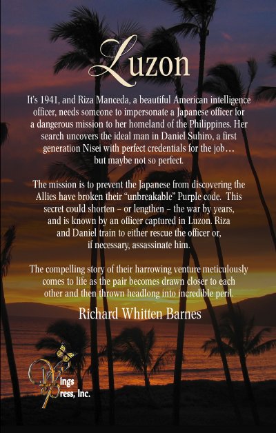 Richard Barnes has written a World War II novel mindful of W.E.B. Griffin. Luzon has something for every reader; history, social issues, romance, suspense, and intrigue. Tightly written, it focuses on the story of a Japanese-American student-turned-soldier and the woman from Luzon who turns to espionage and needs his help. Luzon is a page-turner and enjoyable read.
